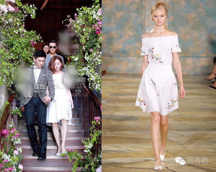刘诗诗穿了Tory Burch 2016春夏的一字肩白色连衣裙