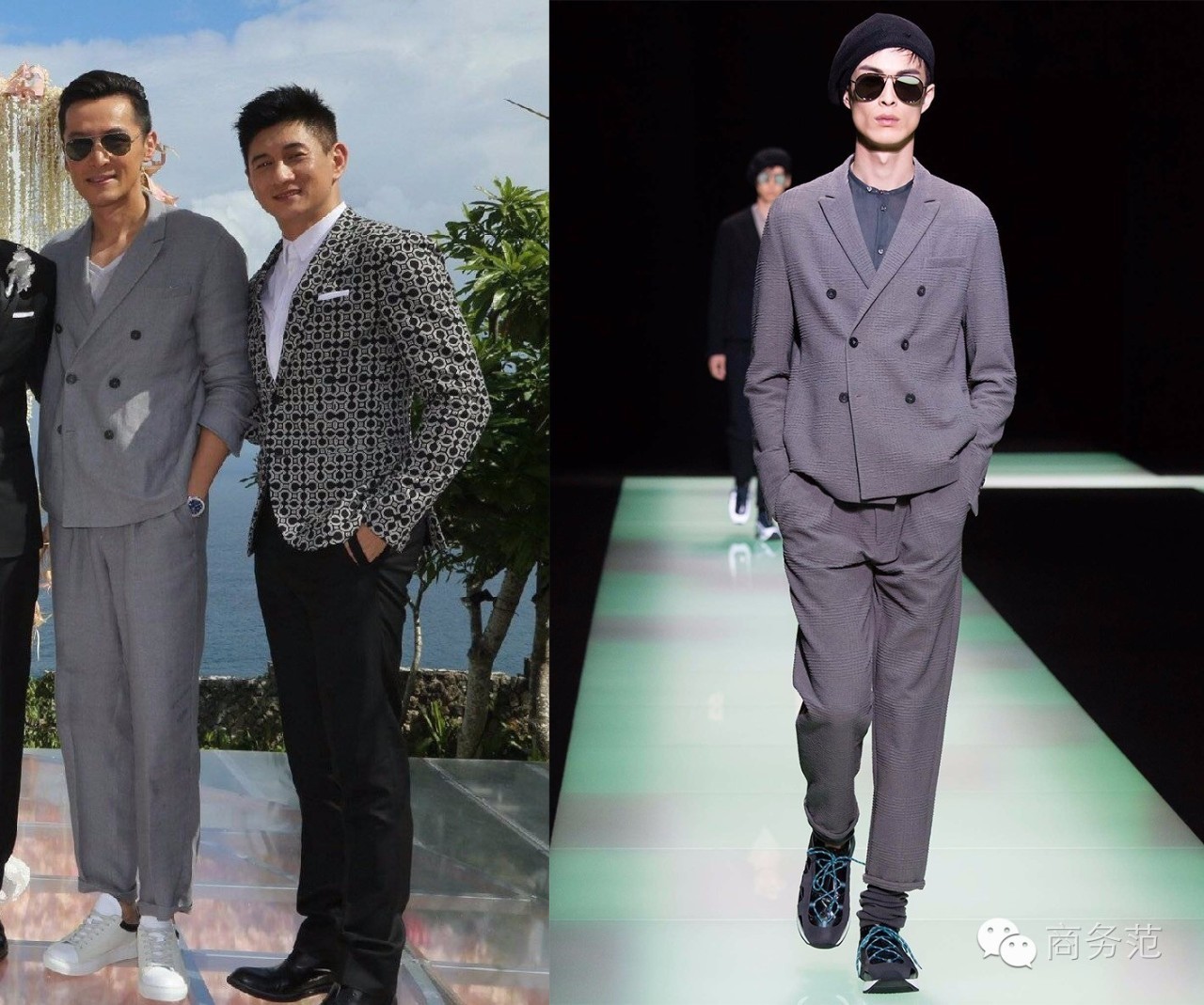 胡歌则穿了Emporio Armani 2016春夏的灰色西装