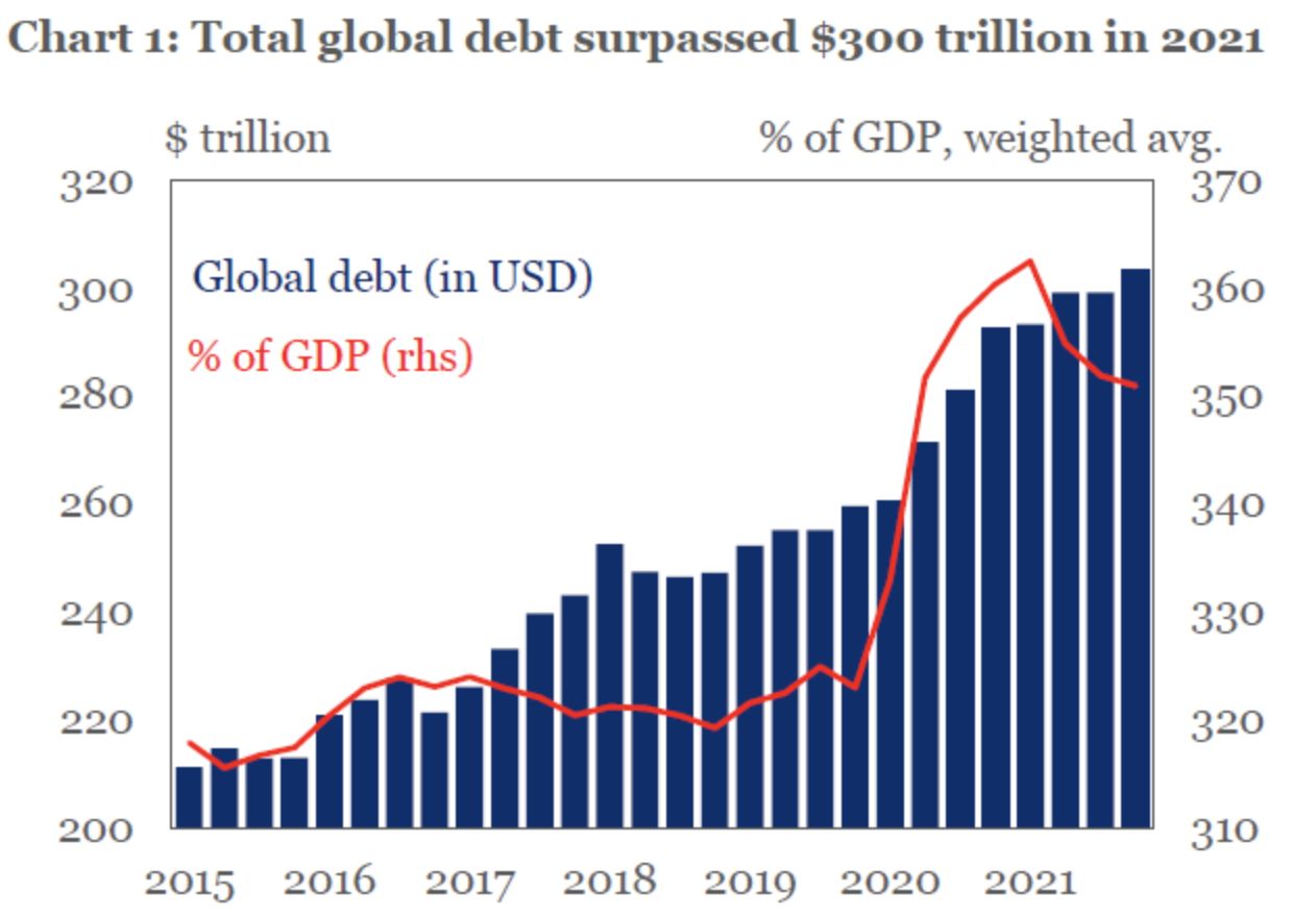 国际金融研究所IIF的数据显示,全球债务今年已经达到创纪录的303万亿美元,相当于全球GDP的350%。其中以美元计价的主权债务尤为值得关注。