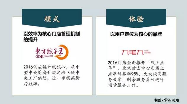 在此之上,我们不能忽略的还有团队基因,比如,东方饺子王在拿到融资后团队内部所增强的“快消”基因。这使得整个品牌在调整过程中对SKU、供应链管理等模块更加重视,系统调整后,整个品牌的客单价从30元提升至50元,其内部还形成了一条高于品牌迭代的“经营模型”,打造:QSR餐厅(Quick Service Restaurant),即打造健康轻餐饮同时,提高门店服务效率和有效性,最终在品牌迭代的基础上使企业获得良性发展。