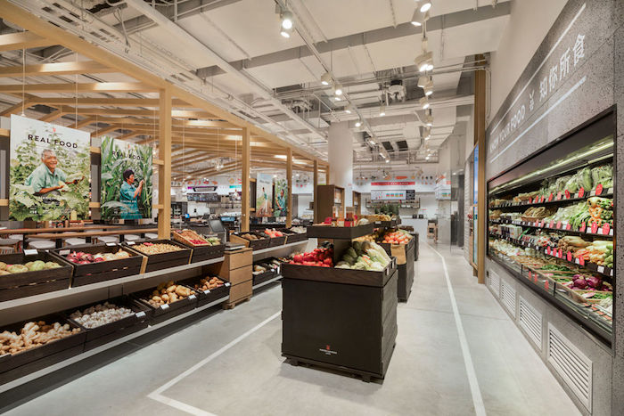 而从唯一的入口进入后,顾客会依次经过有机蔬菜区,自制酱料区、熟食区、零食糕点区、酒水饮料区等等。一路下来,他们既完成了逛店选购的过程,也从路过的不同产品和装饰中,或多或少学习和感受了品牌所想传递的健康饮食知识和理念。