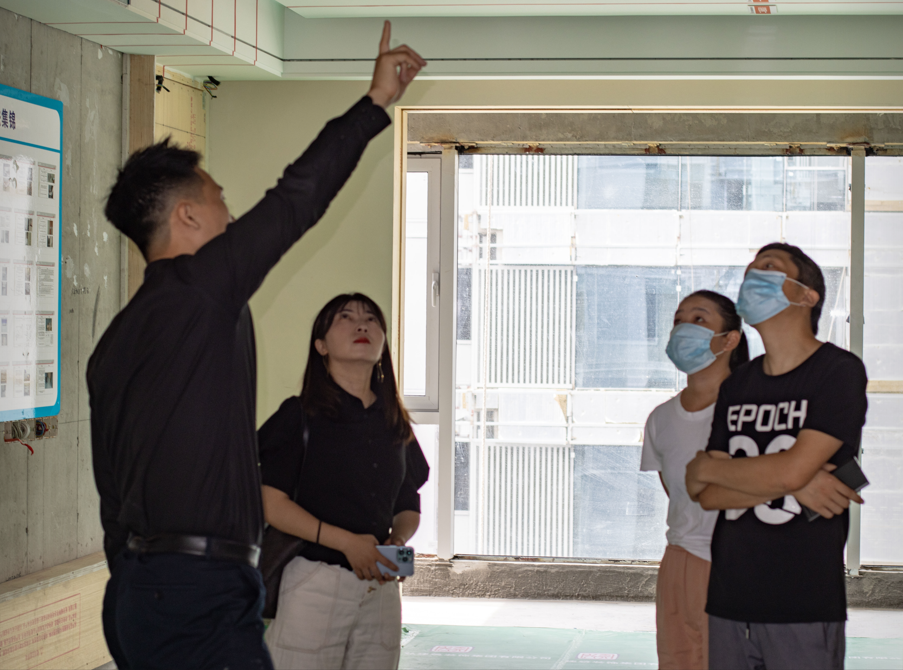 从星级大堂到实景地库体验区,品质讲解官精细化拆解每一道工序,与业主们实时互动,答疑解惑,刷新每位业主对捌号的建筑工艺、建筑用料、检验标准、安全措施和臻装细节的认知,鉴微知著,零距离感受捌号工程细节的严谨性。