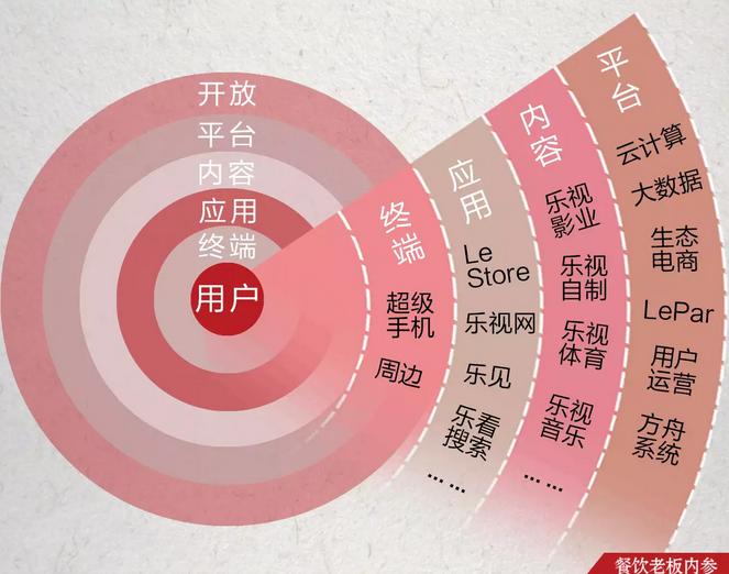 它是基于视频产业和智能终端的“平台+内容+终端+应用”的生态体系。翻译一下,就是在电脑、电视,及手机上都可以使用乐视并且收看乐视的各种视频。