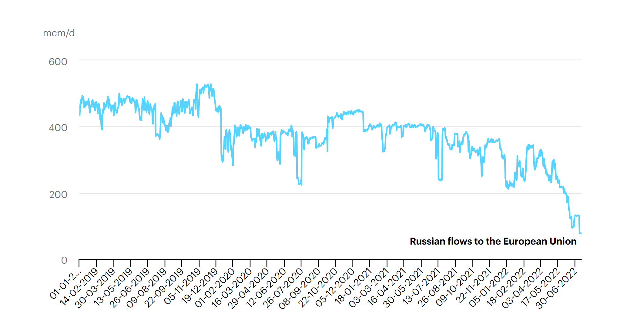 2月末俄乌冲突爆发以来,俄罗斯已大幅削减了向欧盟的输气量。