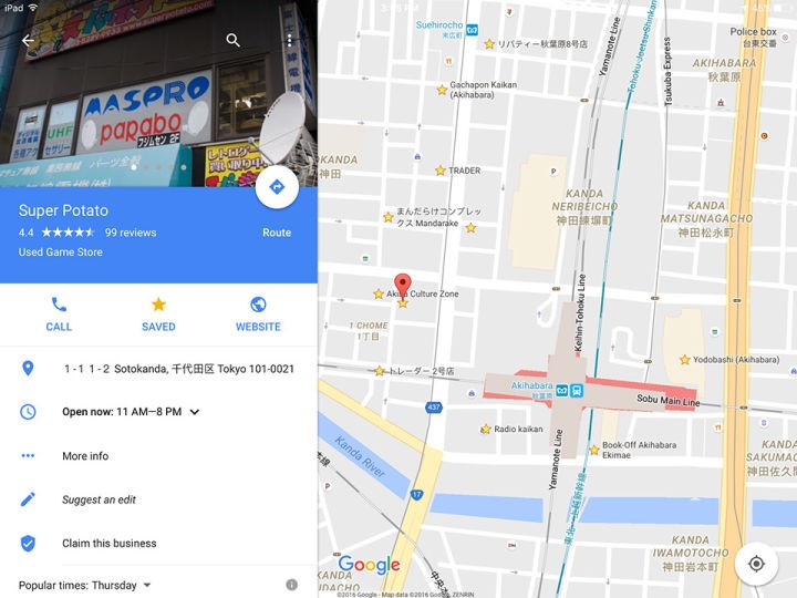 这些让定位更加准确的工具对于要去秋叶原这样商场密集如迷宫般的地方就非常适用,能让你锁定自己要去的某一特定商店和游戏厅。这些功能对于觅食也是非常重要的,软件可以给你提供宝贵的建议。