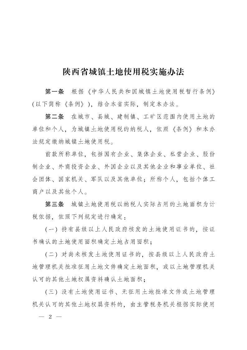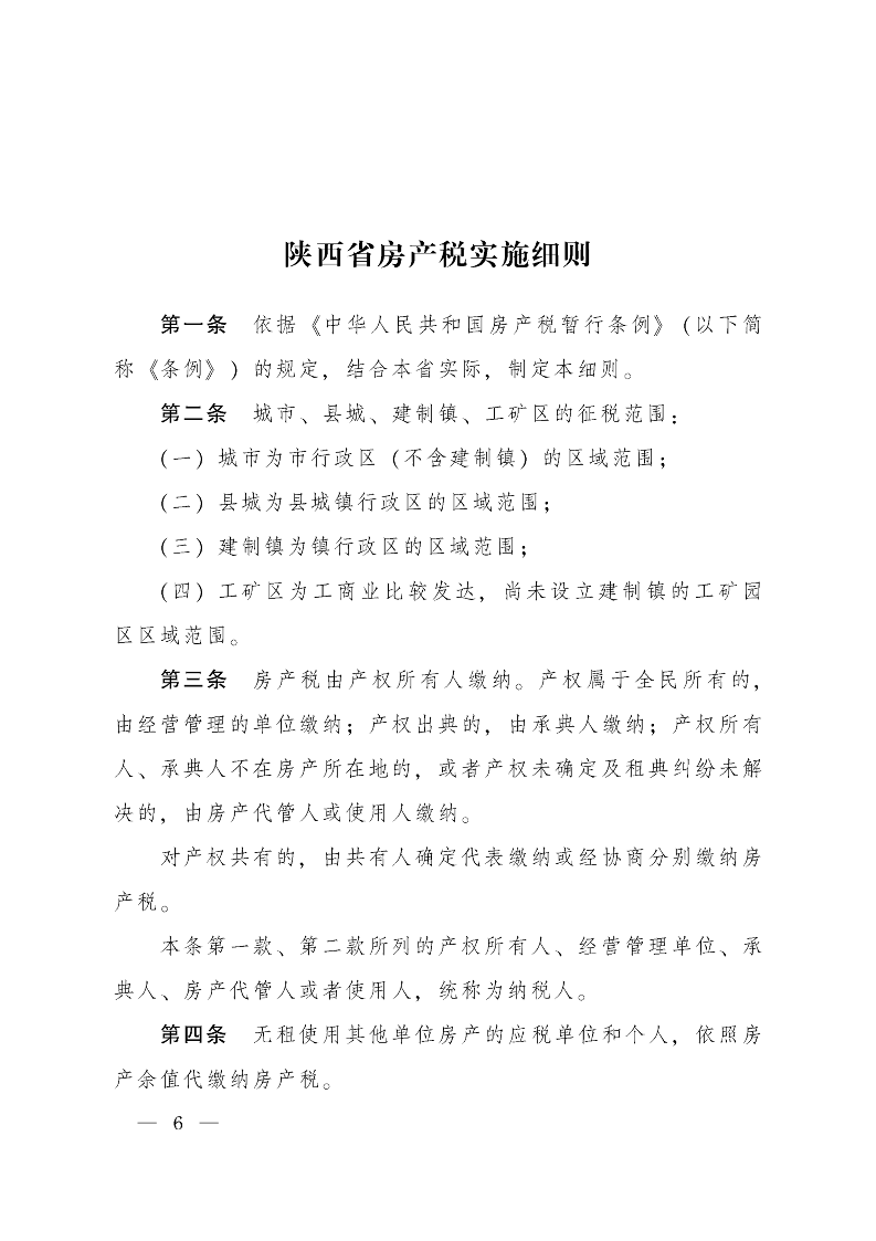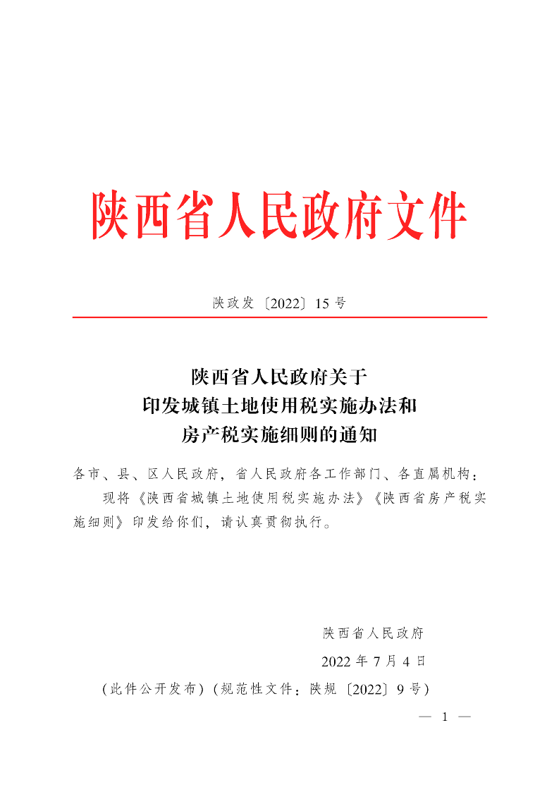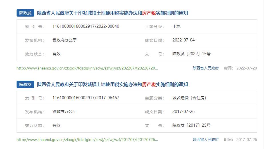 附 《陕西省房产税实施细则》及《陕西省城镇土地使用税实施办法》政策原文如下: