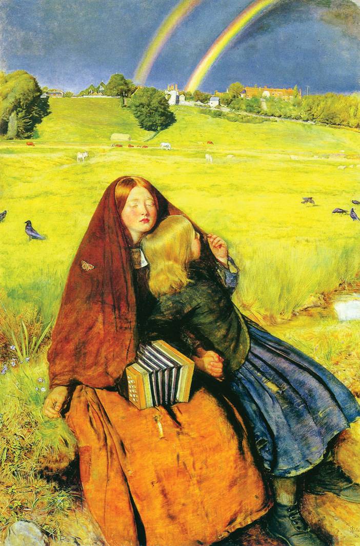 下面我们就来看一个图片。左边(上方)是拉斐尔前派的著名作品《盲女》,米莱斯(创作)的。这个画派最重要的支持者,就是批评家、策展人罗斯金,他曾经因为支持拉斐尔前派成为19世纪最重要的艺术推手。