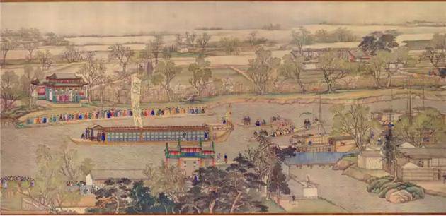 霍克尼的眼光到底来自于什么地方?就是来自于中国的《乾隆南巡图》,他突然发现原来可以不用透视的方法来观看世界。这个藏品就在故宫,也在大都会博物馆,分成两半,一半是纸本,一半是绢本。那么一个西方的画家,当他的视觉观察方式受到冲击的时候,其实就促成了他的视觉创作的转型。而这些东西正是我们中国人最熟识的。