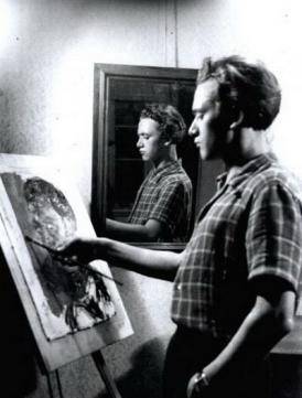 右下角(上方)你可以看到,里希特在东德时期,是德表(德国表现主义)的画法,但是当他逃到西德,再用这种德表的画法去画的时候,他发现他恶心,就像一个人特别讨厌自己的方言,在家乡有着非常惨痛的记忆的时候,他是非常不喜欢说自己的方言的。