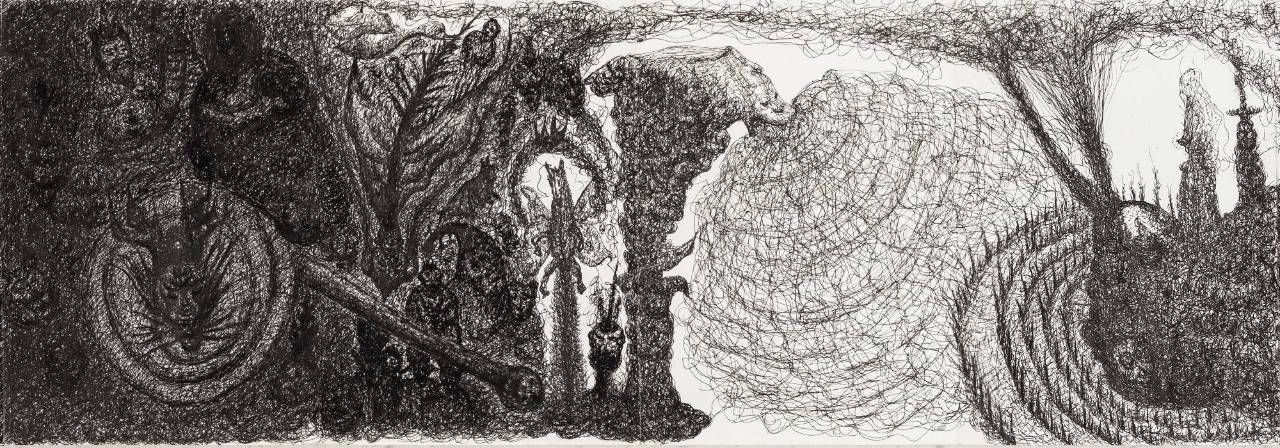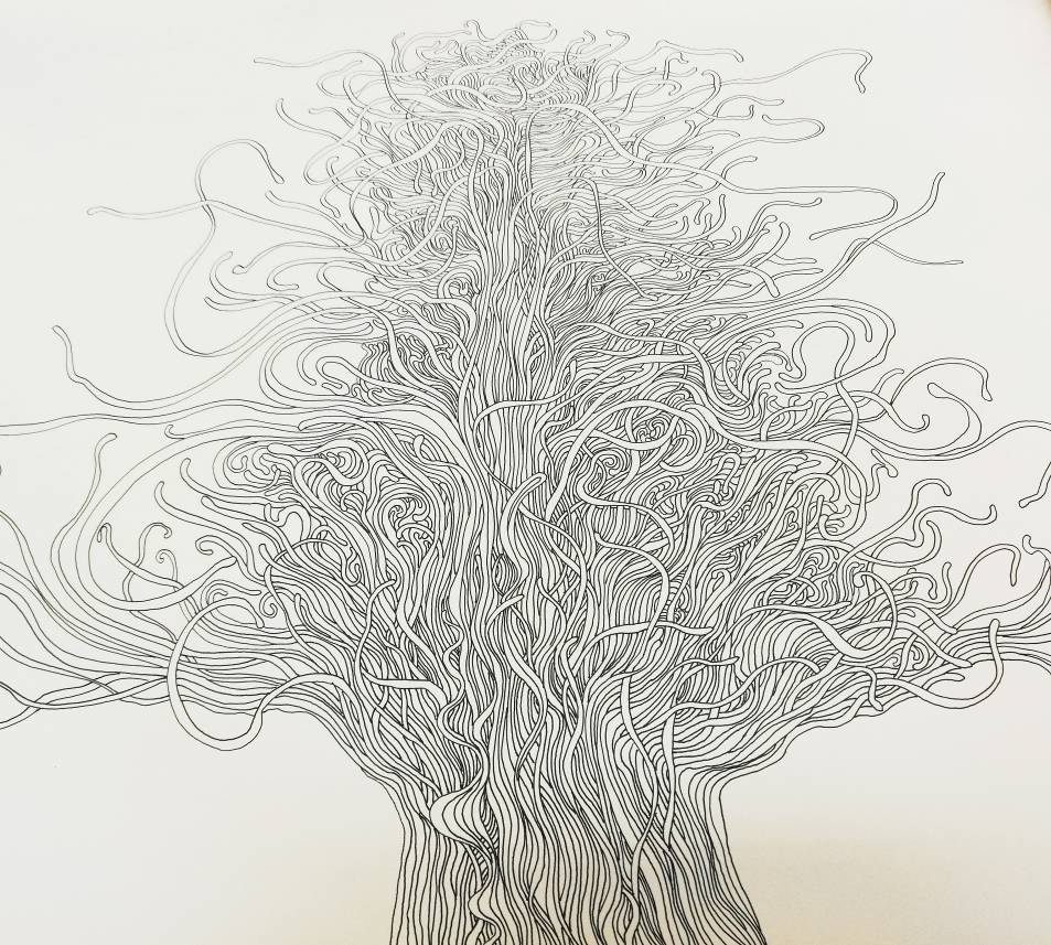 大家可能会认为我是一个写实能力相对比较强的人,其实不是。这种绘画的生成方式,叫做笔笔相生、物物相生。也就是说我刚开始画的时候全是一团乱麻,在这样一个细胞核不停解构的过程中,它最后形成什么就是什么,可能是抽象的,也可能是具像的。
