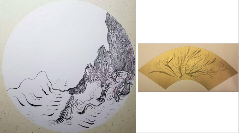 再往下看,两个更新的人,左边(上方)这作者叫何建丹,他这三十年都在做市政工程的雕塑,但是他所有的课余时间都在画水墨、研究心学、研究理学,读书量之大让我特别惊讶。如果懂中国的笔墨的话,你可以看到这个人本身的心性。