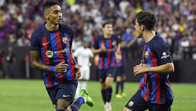 北京时间2022年7月24日上午,巴萨和皇马在美国拉斯维加斯进行了一场赛季前的热身赛。最终,依靠新援拉菲尼亚的一脚远射,巴萨1-0击败皇马,赢下了这场在美国进行的西班牙国家德比。