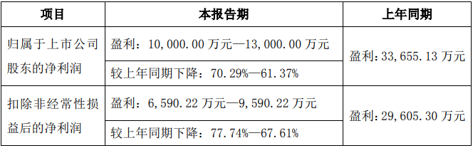7月24日晚间,康泰生物披露上半年业绩预告。公司预计2022年半年度归属于上市公司股东的净利润1亿元至1.3亿元,同比下降70.29%至61.37%。