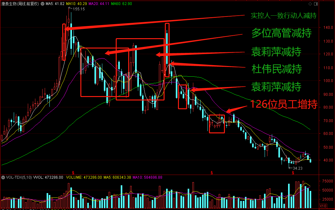 在员工被套牢的同时,康泰生物实控人、实控人前妻及一众高管们,早在股价高位期间,已先后多次完成了套现。