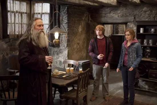 后来在《死圣》里,我们发现当地的酒馆老板居然是阿不福思——邓布利多的弟弟。他俩曾经因为妹妹的死而闹得很不愉快。