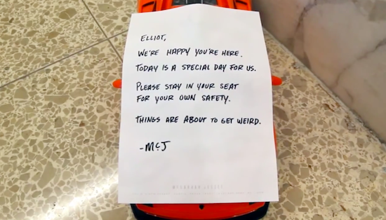 那是公司第100位员工入职的时候,新员工Elliot Nordstrom坐在安静的办公楼大厅等待办理手续,突然一辆遥控小汽车贴着一张小纸条缓缓驶到他脚边:“坐稳了Elliot,前方高能!”