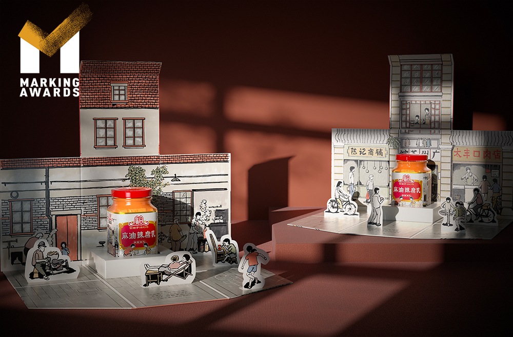 广合是一个起源于清朝、深受中国消费者喜爱的传统品牌。在过去的100年里广合一直致力于生产一种产品——腐乳。为了帮助这个与时代日渐疏离的品牌延伸到其它调味品品类,并与年轻消费者建立起情感联结,广合携手Design Bridge打造了一个品牌重塑方案。Design Bridge做了“给童年留一个角落”的解决方案,采用插画与装置的形式:为了给新的高楼大厦让路,城市中的许多老街道与老弄堂正在迅速消失。对许多80、90后消费者来说,这些变迁使曾经的记忆逐渐模糊,随之而来的是对童年时期的无限怀念。广合的品牌主张正是建立在这种怀旧之上—承诺一种童年的味道,一种能让天真无邪的记忆再次涌现的味道。该设计解决了整个腐乳品类年轻消费者参与度低的痛点,通过广合腐乳“重温童年”的创意在消费者中产生了强烈的共鸣。