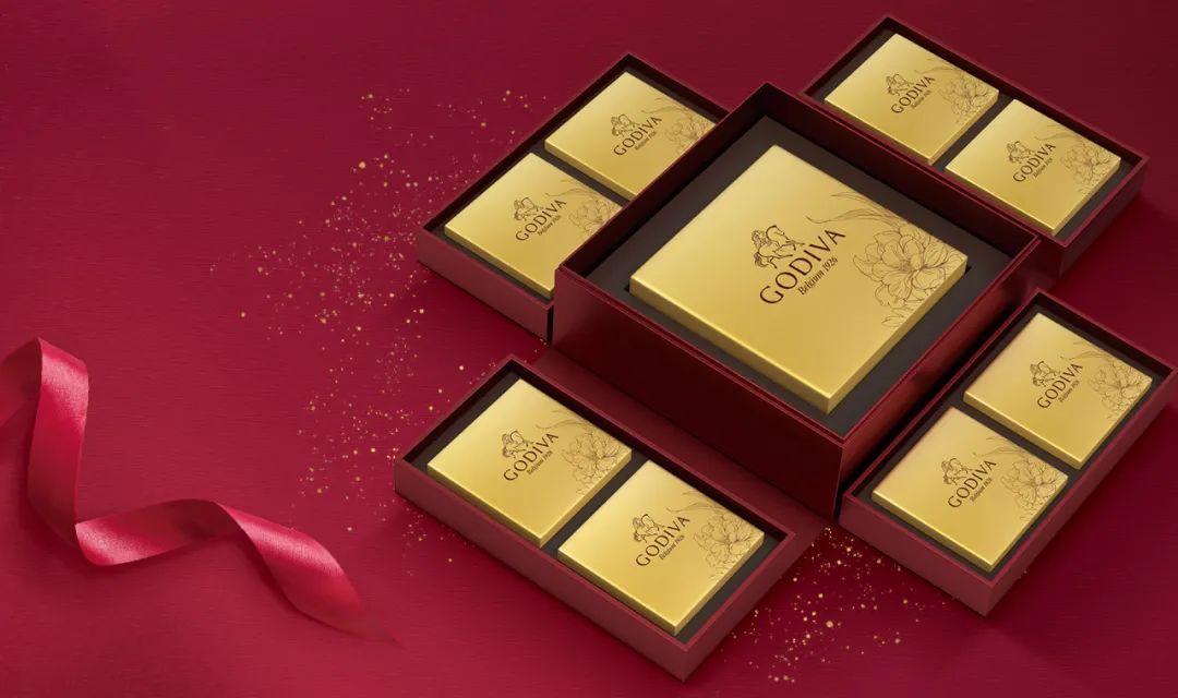 歌帝梵2021年中秋限量版巧克力礼盒,中秋礼盒采用“月圆花开、花前月下”的创意理念,礼盒主画面呈现一 轮金色满月,品牌LOGO印压在满月之上,彰显GODIVA在巧克力品类的品牌力,让礼盒自带高端富贵的气质。月满团圆,花开富贵,是中国人的传统情怀。金秋月圆,情满人间,鸟语花香,富贵荣华。东方传统元素在现代美术手法下演绎出时尚艺术气派。歌帝梵2021年中秋限量版巧克力礼盒,整个系列礼盒的设计感,既能体现西方新年的欢乐洋气,也能体现中国中秋时节限量的附加值。