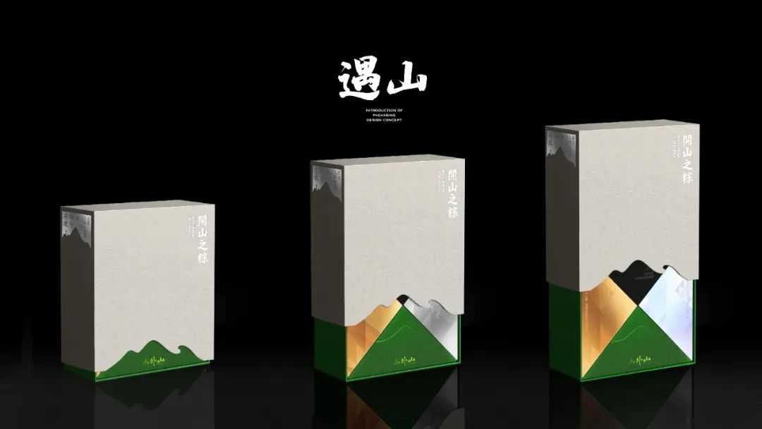 “开山之粽”取“开山之作”谐音。寓意新品的隆重发布和首次亮相,通过端午节礼,与用户共赴一场宋代美学寻根之旅。同时“开山之粽”也承载了“山外山”品牌“以食为礼,赠与美味,给予健康”的概念,通过见山、开山、遇山、寻山、造山的几个维度巧妙解构了粽子礼盒的用户体验心流,以达到食礼,美味,健康的目的。打开粽礼的全过程充满文化仪式感,同时也是企业客户追求:开万山,创新路,登顶峰的辉煌之路!开启“开山之粽”礼盒后看到四座“山形粽”映入眼底。分别是:金山粽、银山粽、江山粽、青山粽,以及一个“盲盒山”。这四个“山形粽”分别有各自的山相。即:开启金山粽聚财富;开启银山粽增幸福;开启江山粽固事业;开启青山粽结情谊。并且在“开山之粽”礼盒中隐藏了一个山形开瓶器,取名:开山器(盲山盒),集成功能和文化,寓意:开启美好、开启健康、开启快乐。