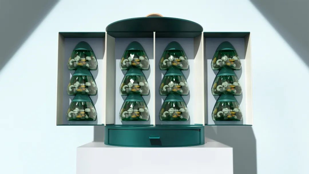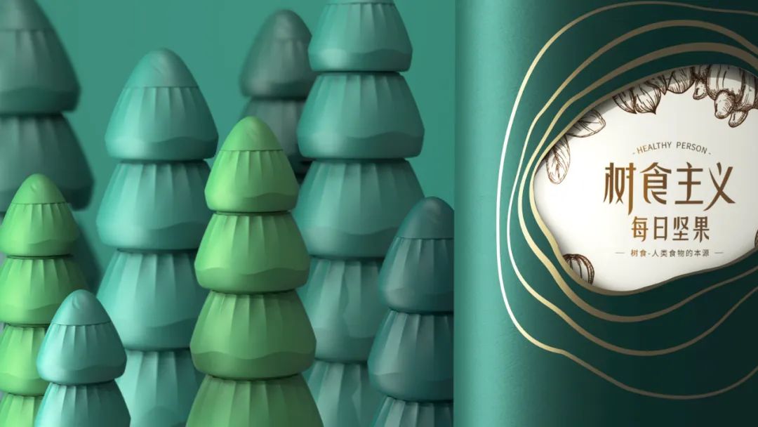 作品品牌重新思考了坚果在人们饮食生活中的意义,提出了树食主义理念——“树食”是人类生活的本源,有着悠久的食用历史,聚集了自然树木之营养精华,是从远古继承而来的健康生活方式之一。由此,设计出了这一款树食主义每日坚果礼盒——充满绿色魅力的树桩外形,内部向上生长着四颗生命小树,每颗小树又分别由三只绿色通透的小坚果罐组成,与此同时,小坚果罐还可以成为分享托盘的底托,让坚果可以分享,让分享更有仪式感。无论是日常生活,还是高端商务场景,这款礼盒都能让树食背后的意义得到更大的展现,希望通过这种方式,让人们在包装故事中探寻到坚果的成长秘密,更进一步地体会到坚果本身在生活中的重要性。