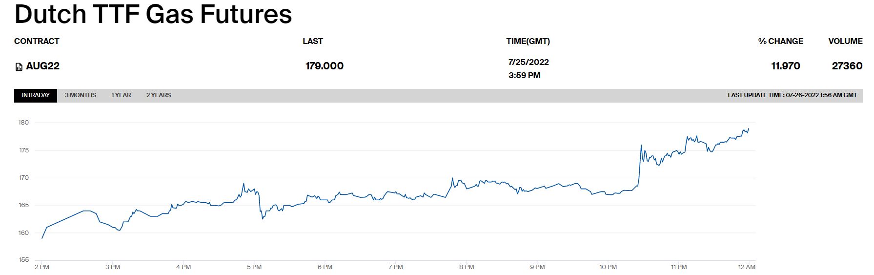 声明发布后,欧洲基准TTF荷兰天然气期货价格飙升11.97%,收报179欧元/兆瓦时。