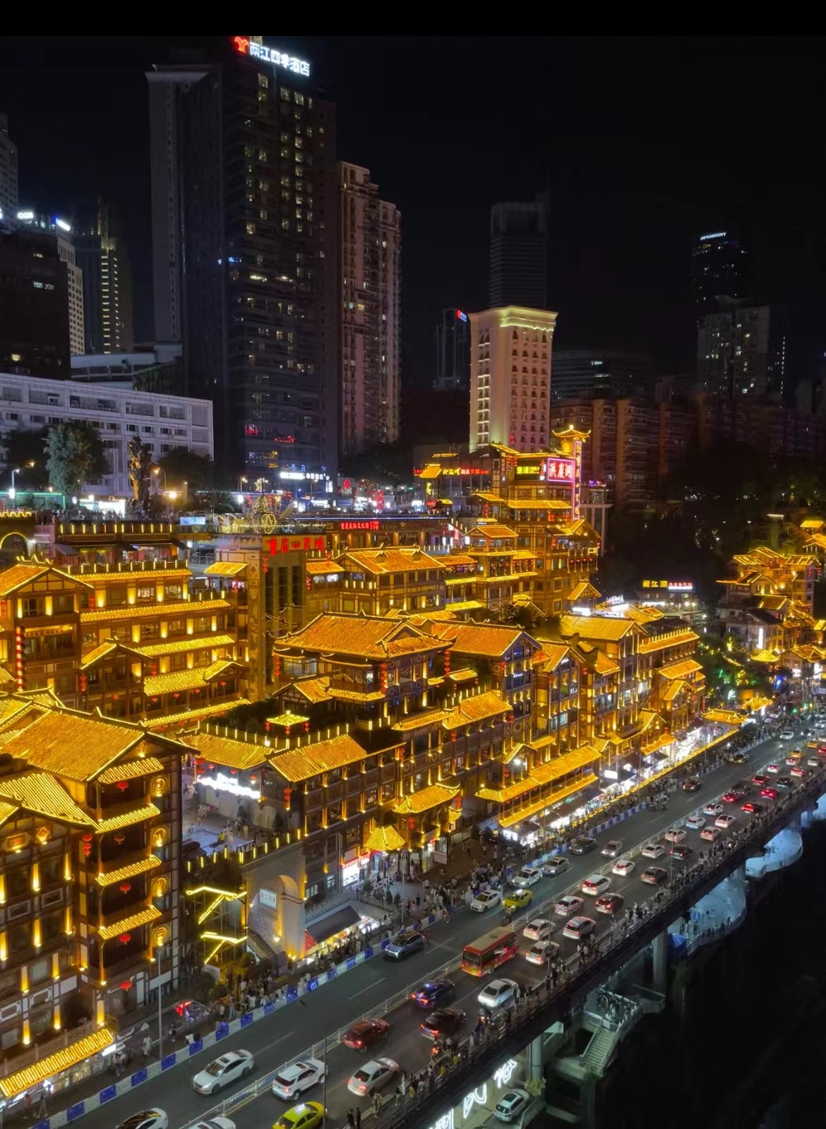 重庆复杂的地势难免让初来乍到的人慌了神,如果在走街串巷时迷了路,那不如将错就错,也许会收获更别致的风景。本想试图找到洪崖洞夜景的最佳观赏点,但在人潮汹涌的情况下也只能无奈地“随波逐流”,幸运的是,最终还是在千厮门嘉陵江大桥上一睹芳容。