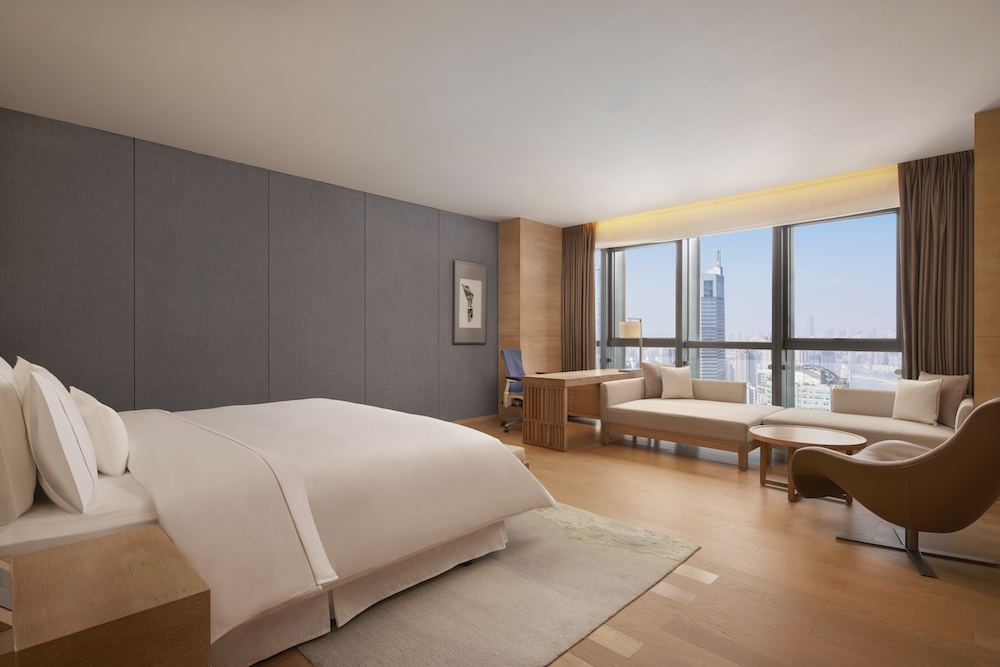 酒店内的 317 间客房结合了东方文化和重庆的特色地貌,等高线的床屏展示重庆地理位置并配置中国传统水墨画画轴的电视墙,房内浴缸处则采用的明清中式床架的元素,均充分展现出中国的传统文化。此外,艾美酒店客房房间里一般都会有咖啡券,可以到大堂或者餐厅进行兑换。
