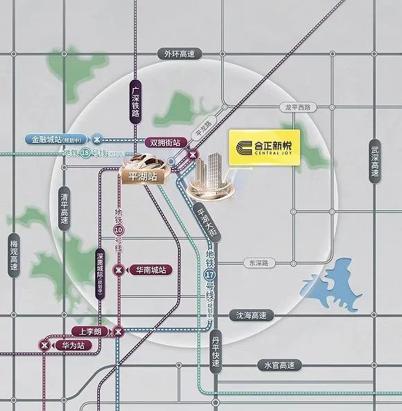 精准占据平湖枢纽1公里核心圈的优质地理位置,周边环绕有3条地铁路线、4条高速通道,未来居住于此,能快速通往各区。