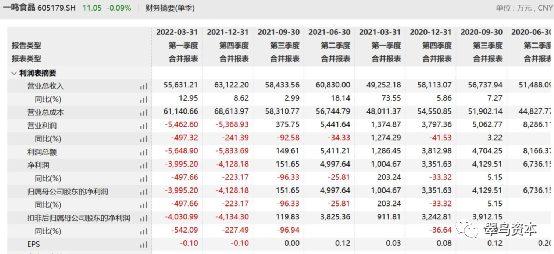 如下图所示,自2021年二季度起,一鸣食品的营业利润、利润总额、净利润出现了大面积的同比下滑幅度,比例高至500%。