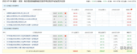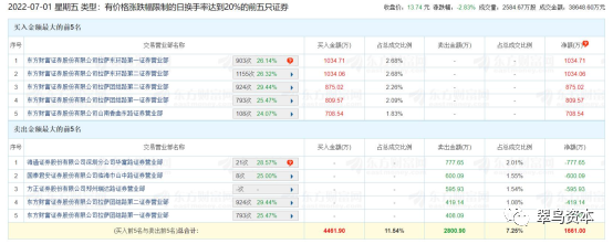 当日,多个证券交易席位登上龙虎榜,其中东方财富证券拉萨的多个营业部上榜,霸占了整个买入金额的席位。