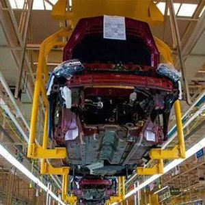 内饰装配完成后,车身进入底盘线,在这里完成底盘的装配,每个工位安装不同的总成,比如装配好的悬架总成通过机器直接装到车身上,悬架装配好之后就是轮边。由此可见,工位的布置和工序的安排非常重要,合理的工序布置可以降低生产节拍。
