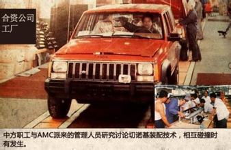 中国汽车工业的第一个中外合资企业是北京吉普汽车有限公司,由北京汽车制造厂与美国AMC汽车公司(后来外方改为收购了AMC的戴姆勒-克莱斯勒公司)于1983年5月5日签约,1984年1月15日正式开业,合资经营期限为20年。中方股本占57.6%,美方股本占42.4%,投资总额41121万美元。当合资合同期满前,戴姆勒-克莱斯勒公司在2000年9月举行的北京吉普特别董事会上决定,合资期限延长30年,戴-克向公司增资2.18亿美元,并投入新产品。