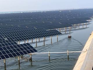 过去,这里是盐田和传统养殖区。现在,这片水域成为了全国单体最大的“渔光一体”项目,装机容量300 MW。日前,界面新闻记者实地探访了该电站。