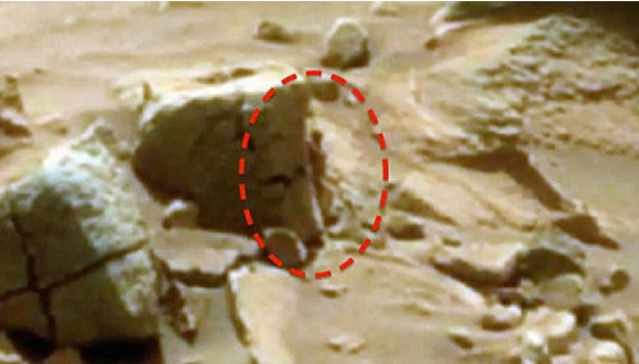 照片的中下部,该用户称发现了某些奇怪之处。“火星车捕捉到的有趣奇异生物,就像一个小火星人。”该用户声称,不论原始图片中的一切看起来多么像人,总让他想起阿塔卡马沙漠外星人。并且,从“体型”上看,这个外星人可能是火星上的女性。