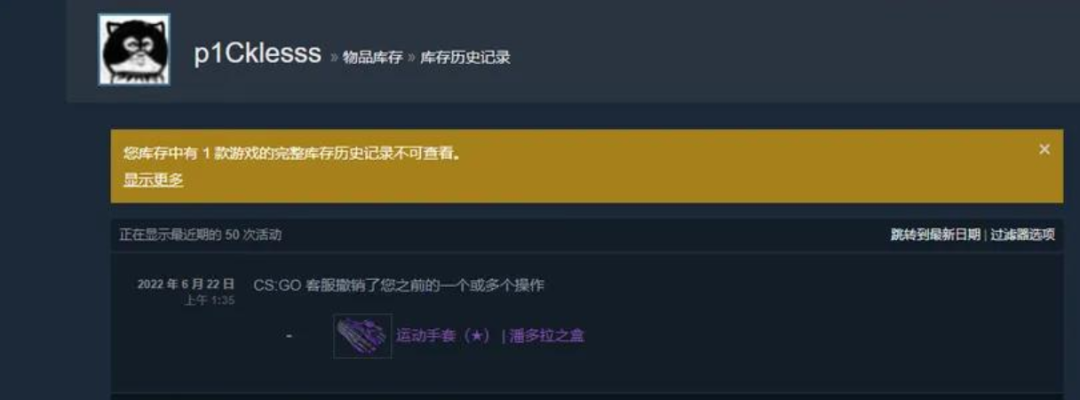 更为重要的是,不久后购买这些饰品的玩家发现,自己购买的这部分饰品无故从库存里消失,查询记录后显示由V社官方直接回收,而自己购买的饰品花费的钱却并不一定能得到退回。