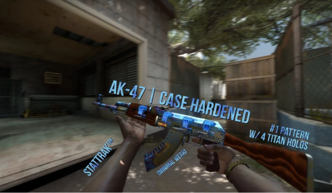 在去年时,中国玩家刷新了《CS:GO》的最高成交价,交易内容是一把略有磨损的暗金淬火661模板的AK-47和一把崭新纪念龙狙,两把枪上均贴有4张14年卡托维兹的泰坦全息贴纸,成交价约500万人民币。