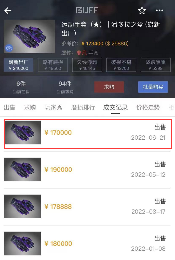 在“网易Buff”平台上出售的第一世界磨损手套,价格甚至低于正常价格