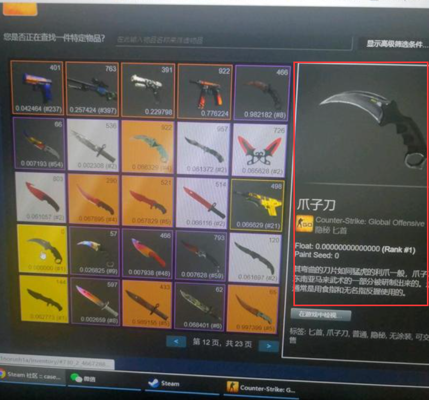 因bug产生的世界唯一一把无星无磨损爪子刀,在迪拜王子之前的成交记录为20万美元