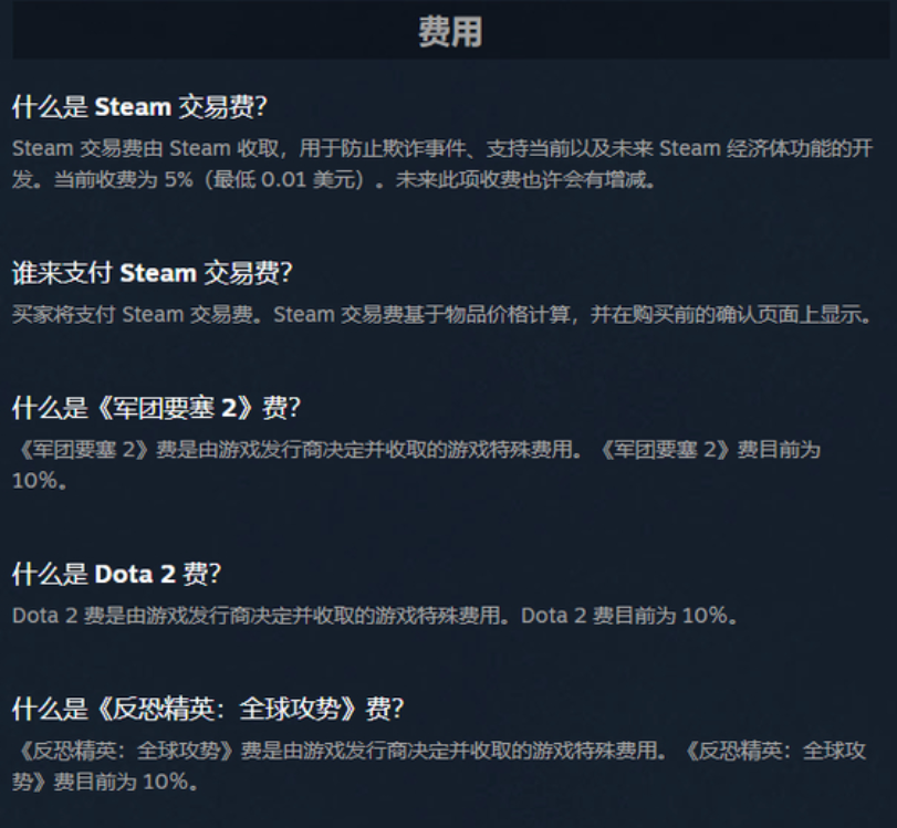 首先要强调的是,《CS:GO》的饰品,大部分人是不会在Steam市场上交易的,一是市场余额不能直接提现,二是Steam市场交易《CS:GO》饰品手续费极高,游戏本身有10%的手续费,外加市场的5%手续费,一共要收取15%的手续费。