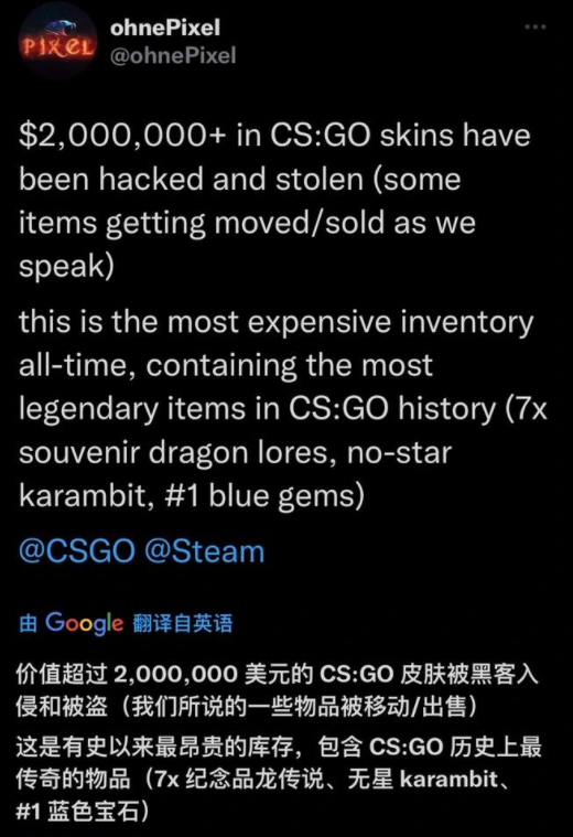 整件事瞬间在《CS:GO》玩家圈内掀起了滔天巨浪,成功出圈,顺便也让圈外人一窥了《CS:GO》庞大市场的一角。