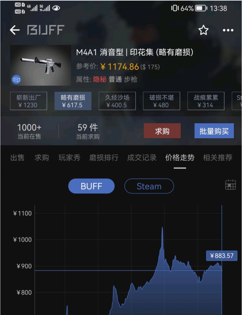 发布M4A1削弱消息后,其部分枪皮在短短1小时内就暴跌超200元