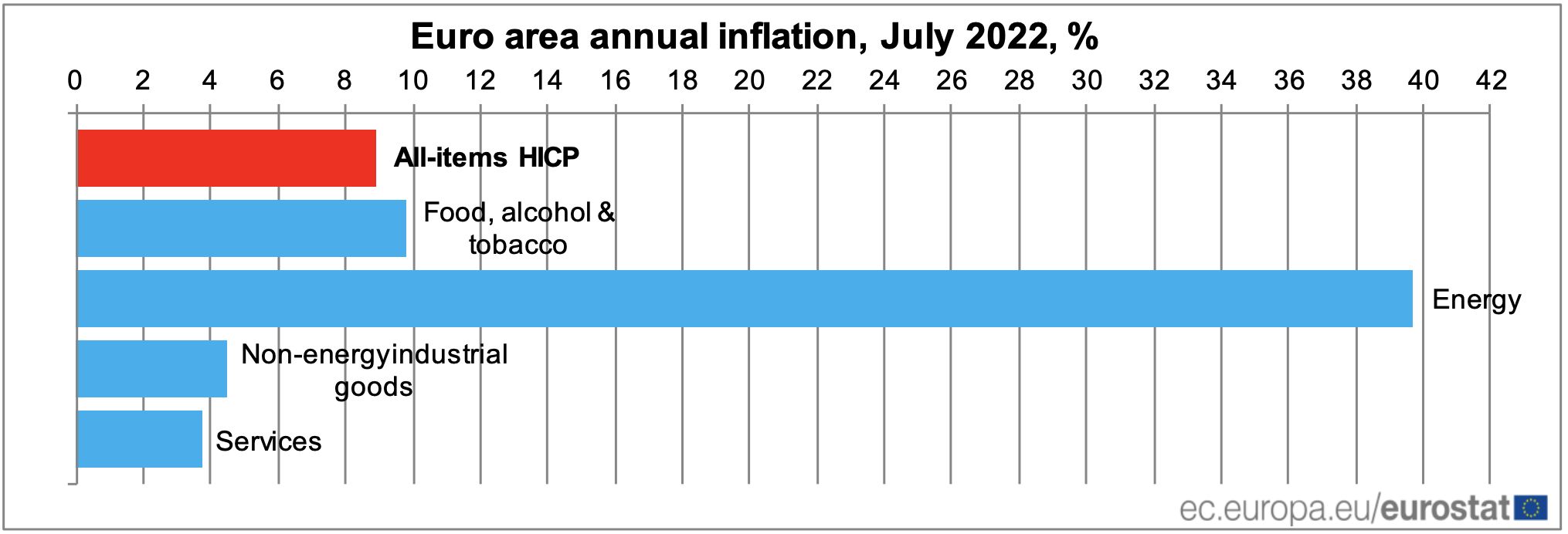 初值为8.9%的消费者物价指数上涨仍然由能源价格主导,该类价格同比上涨达39.7%,食品类、非能源工业品类与服务类价格则分别同比上涨9.8%、4.5%、3.7%。
