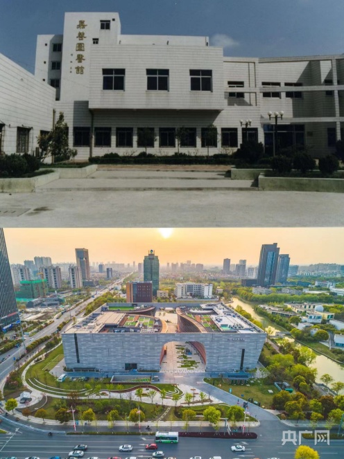 上图:2010年拍摄的嘉善图书馆下图:2019年6月,嘉善图书馆、博物馆新馆开馆亮相(央广网发 嘉兴市委宣传部供图)