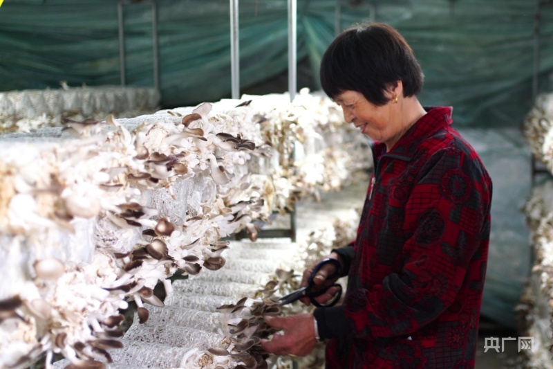 长啸村“农光互补”食用菌基地蘑菇丰收(央广网记者 尚天宇 摄)