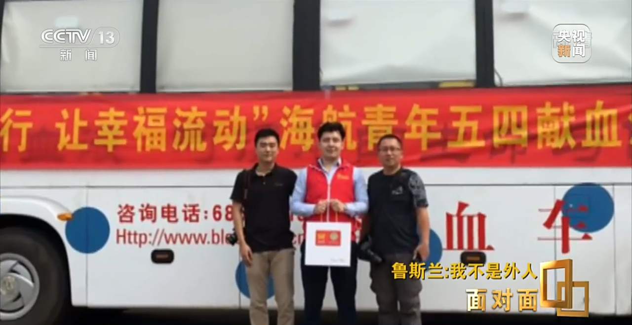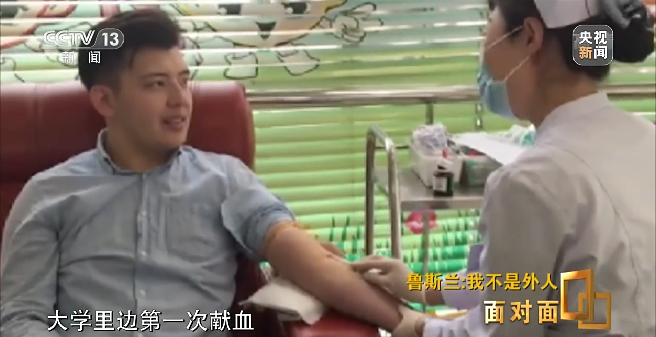 鲁斯兰:在大学读书期间,那个时候是2009年,我下课以后去食堂吃饭,吃完午饭之后我看到有一辆献血车,那个时候还不知道是一个献血车。看到好多同学在那边排队,不知道是什么,看到我的一个同学我的好朋友,然后问他为什么大家都在排队,他给我介绍了一下,说我们是志愿者,在参加无偿献血活动,我们正在帮助别人。从小妈妈会教我,你要去中国读书,你成人的时候我就不在你身边,没有人指导你,但是你不要忘记,长大之后你要做一个好人。
