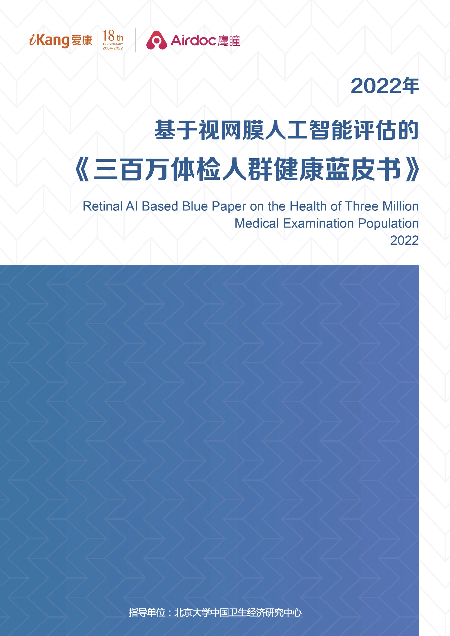 2022年8月2日,在北京大学中国卫生经济研究中心的指导下,爱康集团与鹰瞳Airdoc联合发布基于视网膜人工智能评估的《三百万体检人群健康蓝皮书》(以下简称“《蓝皮书》”)。