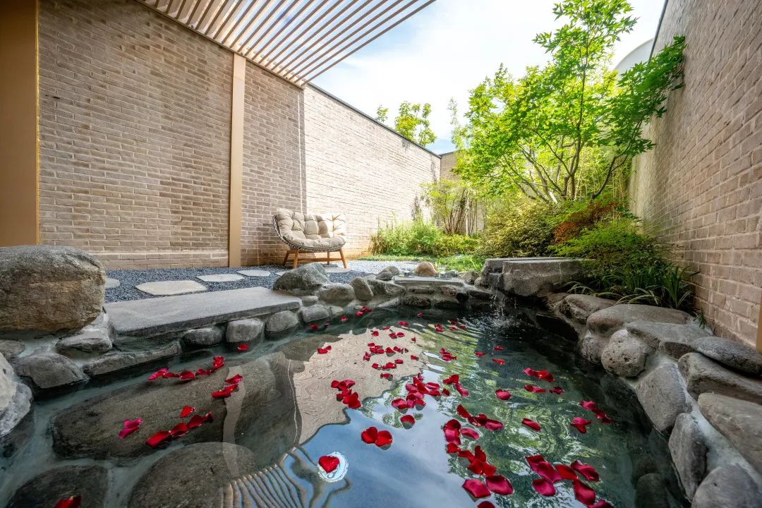 酒店拥有18栋江南独栋庭院,配备共享空间、私汤等设施。同时,还专为宠物家庭准备了家庭房和宠物物品,亲子家庭亦配有儿童俱乐部。