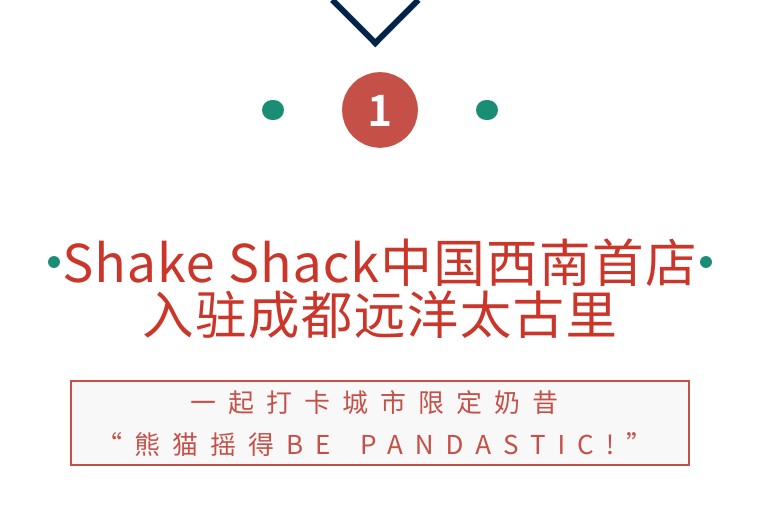 此次Shake Shack也向川味美食致敬,创新推出了一款城市限定奶昔——“熊猫摇得BE PANDASTIC!”,一款门店限定冰激凌——“寻‘茉’太古里Give Me the Tea”和一款慈善冰激凌——“巴适得‘粉’Feeling So BASHI”。此外,为契合成都人无辣不欢的饮食习惯,Shake Shack还携手当地米其林一星餐厅马旺子特别定制了一款独家蘸料——马旺子秘制辣椒面,专门用于配合薯条和招牌脆鸡块的口感。