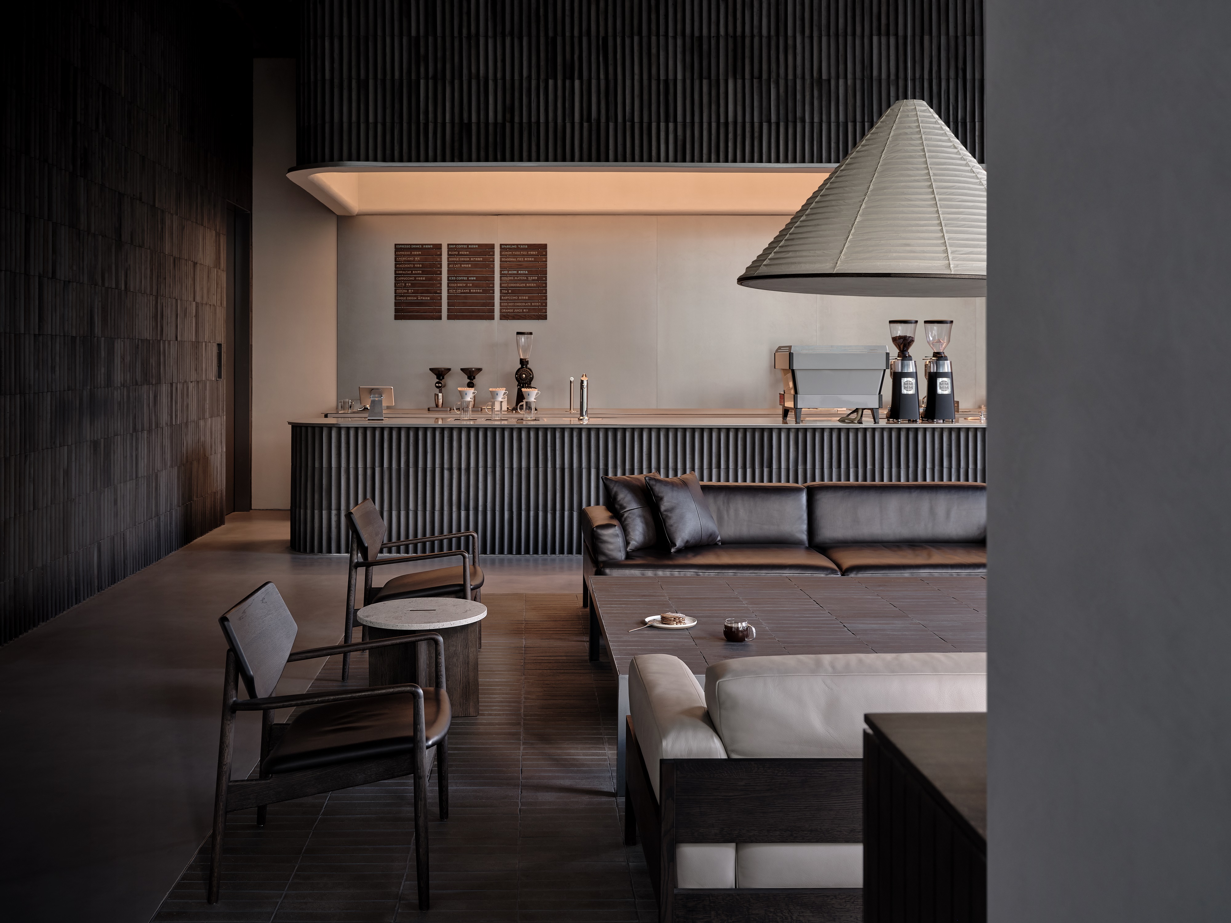 静安嘉里中心店是蓝瓶与芦沢啓治建筑事务所(Keiji Ashizawa Design)携手创作的第四家门店,借鉴上海石库门里弄的结构,打造“建筑中的建筑”,呈现贯穿从一层到二层、隐蔽又开阔的特色空间;同时以中国传统的屋面瓦为设计灵感,延伸应用在空间、材料和餐点上。静安嘉里中心店期待着大家的光临!