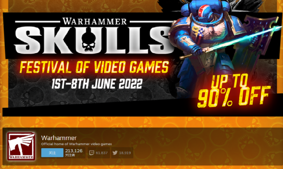 前不久,Steam平台开展了一个名为“战锤Skulls”的大型折扣活动,宣传页面占据了Steam的新闻推送和商城封面,进入活动页面可以看到大量游戏正在进行降价促销,而这些正在促销的游戏基本都是《战锤40K》这一科幻IP的改编游戏。